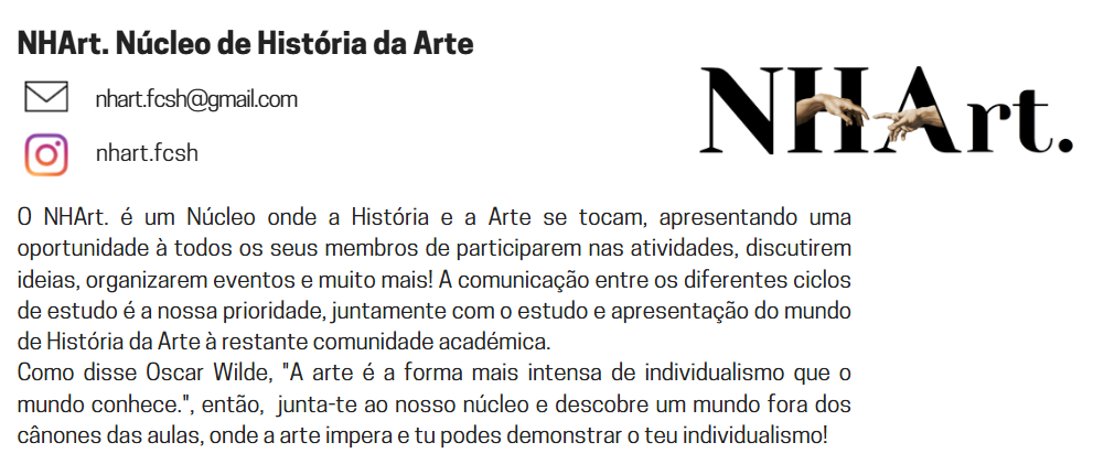 Na FCSH, a sala de aula não é a única arena de aprendizagem e formação. Os núcleos e grupos de estudantes permitem-te enriquecer a tua expressão individual e aprofundar a tua experiência académica, com uma vasta oferta de eventos e atividades direcionadas para os estudantes. Contacta-os e envolve-te!